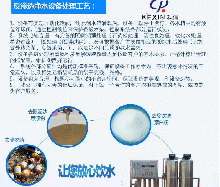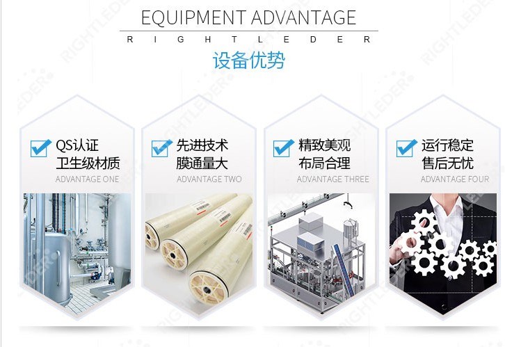 2.系統(tǒng)比較合理,有完善的RO前期預處理(石英砂處理、活性炭處理、軟化水處理、精密過濾),RO處理(RO膜過濾),及可根據(jù)客戶需要做相應的RO純水后處理(比如紫外線殺菌、臭氧殺菌、),以滿足不同品質(zhì)RO純水需求。